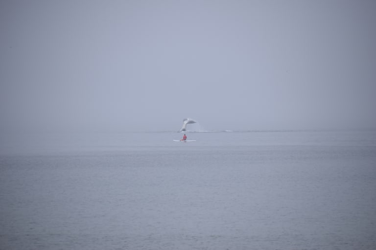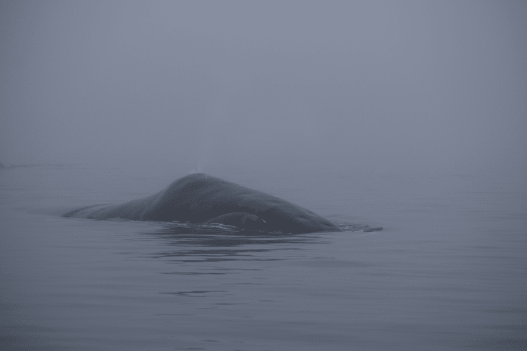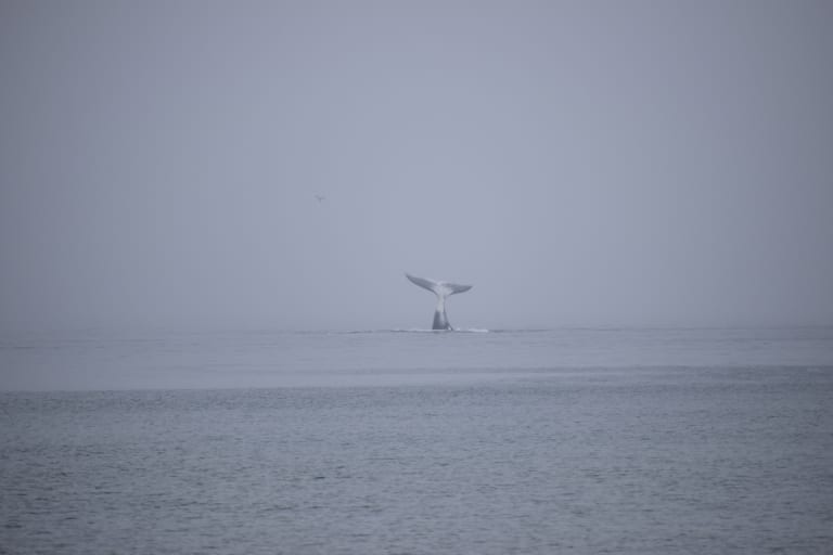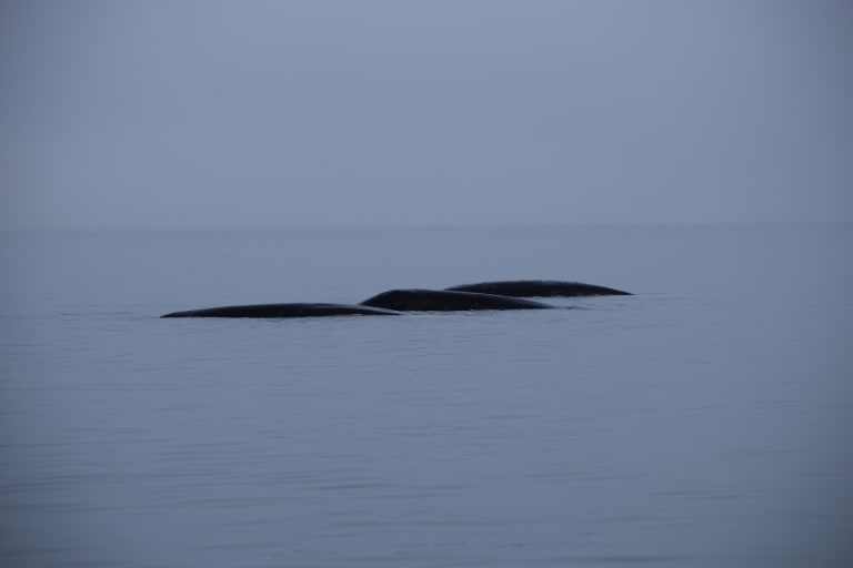 Took a rowboat out into the morning fog to see if the whales would engage. They did! Several fly-bys and spending time in the midst of socialising whales.