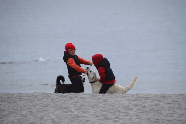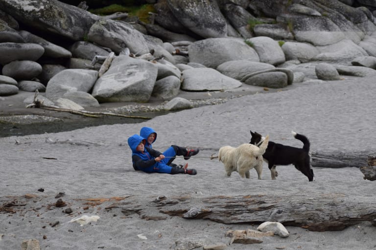 Walk along the rocky coast with dogs and travelling companions. Goofed off, finding shelter from the occassional rain. Almost lost one of the dogs who joined us, who needed to be “airlifted” after falling between rocks.