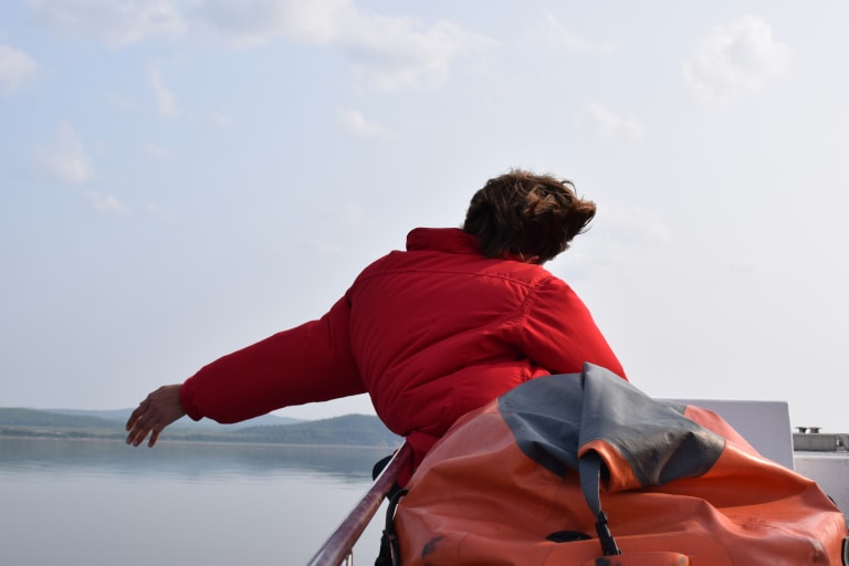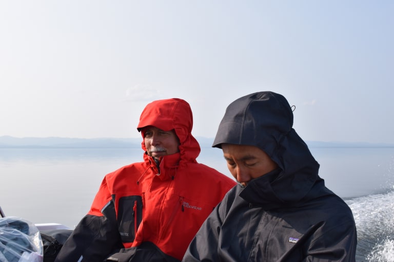 Boat trip to staging bay has utterly flat waters. Expected cold, but temperatures are perfect in the wind.