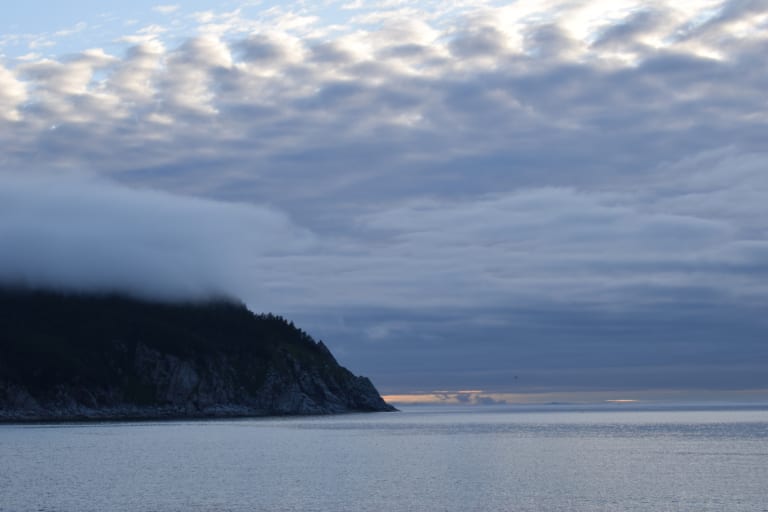 Coming back, the fog rolls in. Listen to the sound of whales respirating in the fog for a while. Eerie. Cold.