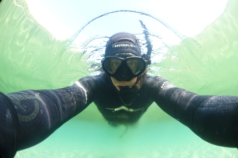 After lunch go free diving in the bay. Decent dive times, but too cold (and too shallow) for comfortable long dives. Need to warm up faster instead of pfaffing about looking at fish.